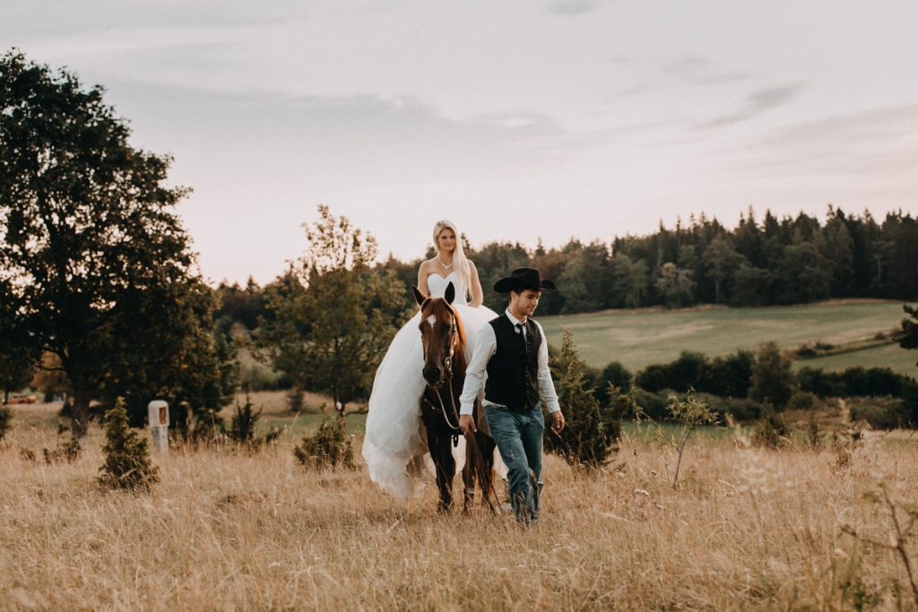 Schon die Western-Hochzeit von Angi und Bernd in einem Schaffstall in Mahlstetten war außergewöhnlich. Die beiden besitzen eine Ranch und bieten auf ihrem Hof Reittherapie und Hundeschule an. Neben den Pferden leben auf dem Hof mehrere Hunde, Katzen, Schafe und Hühner.